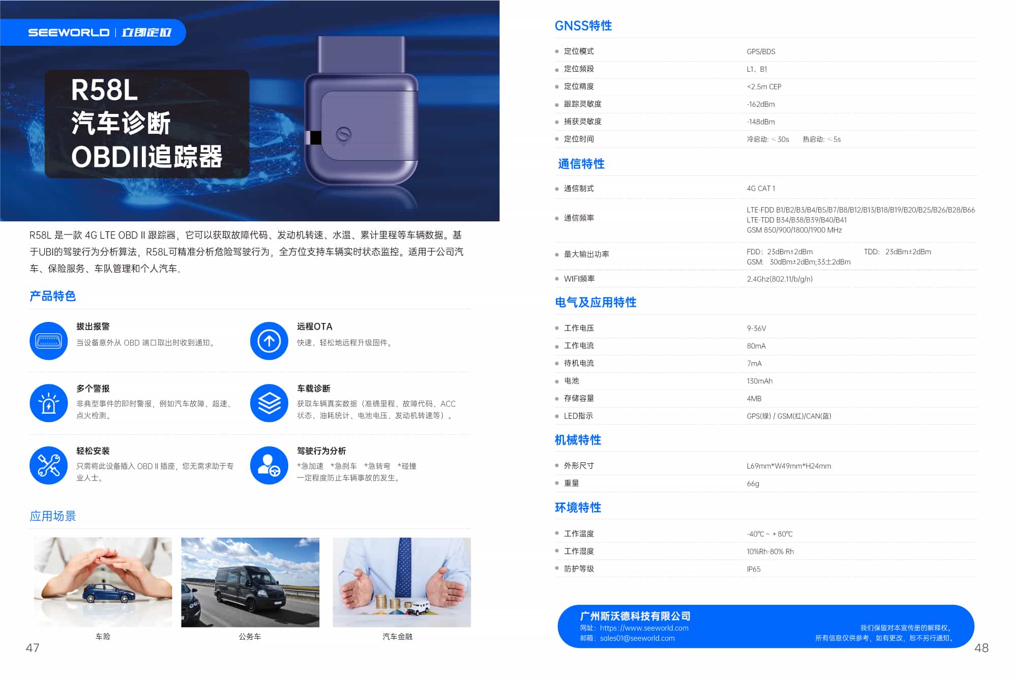 R58L 是一款 4G LTE OBD II 跟蹤器,它可以獲取故障代碼、發動機轉速、水溫、累計里程等車輛數據?;赨BI的駕駛行為分析算法,R58L可精準分析危險駕駛行為,全方位支持車輛實時狀態監控。適用于公司汽車、保險服務、車隊管理和個人汽車,